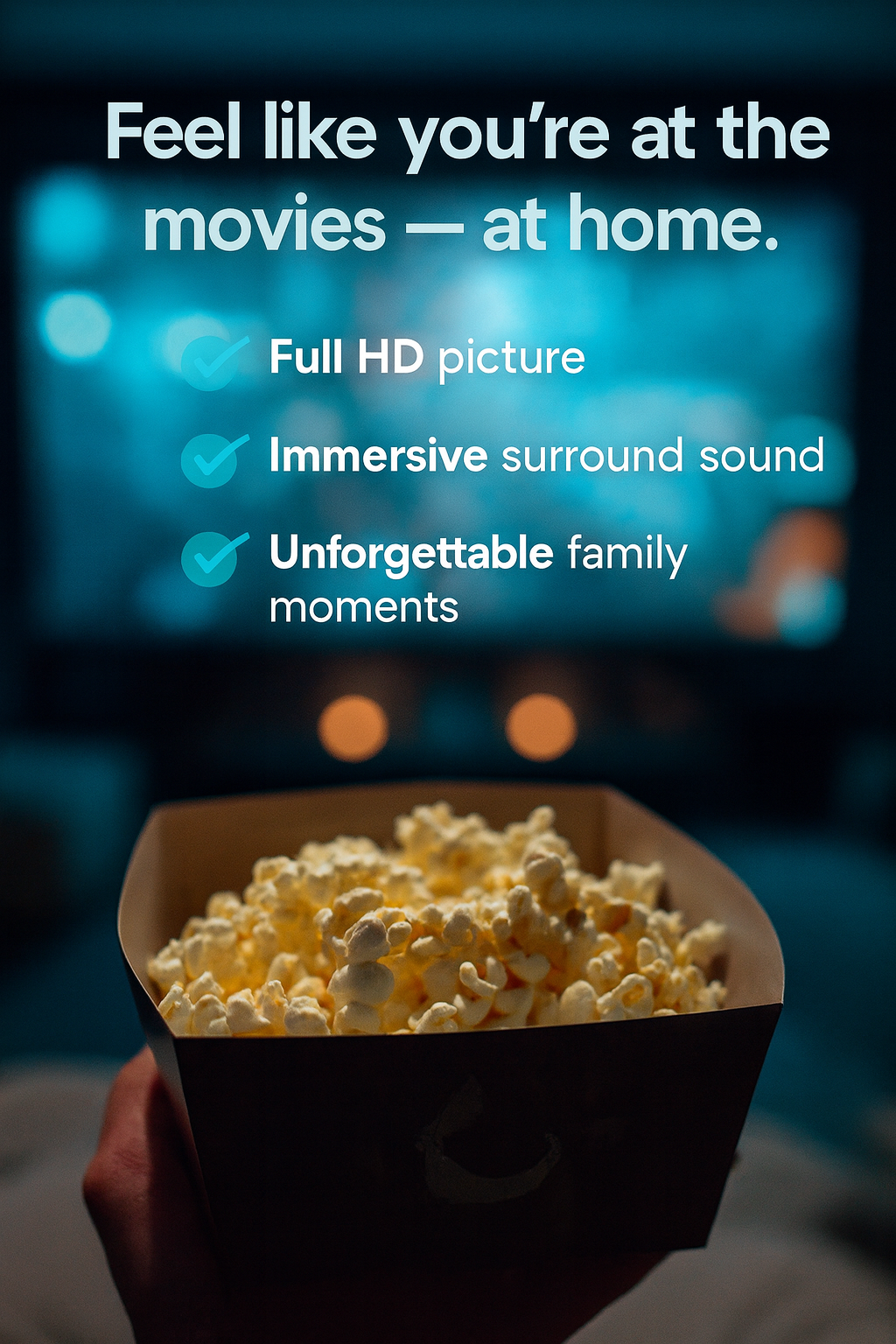 The projector has a maximum resolution of 1920x1080 pixels and is compatible with 4K quality, offering a unique home cinema experience.